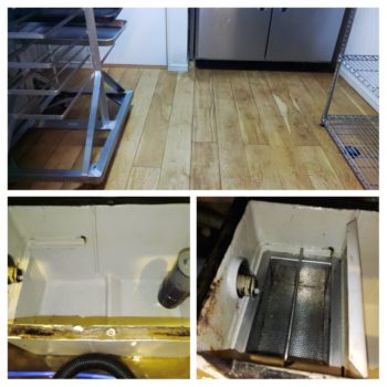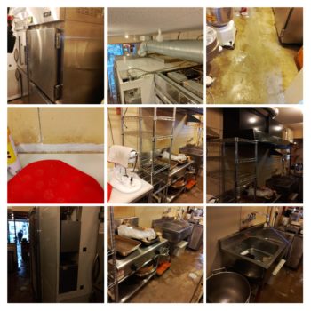 エアコン4台、グリストラップの洗いや壁や床、冷蔵庫やオーブンの機械等全て美装しました!